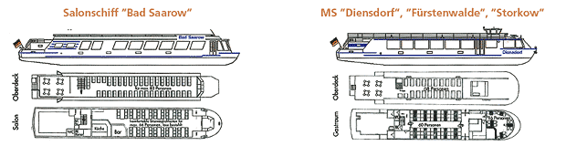 MS „Diensdorf” | 72 | (60 + 12)* | Polsterbänke | 70 | Bänke und Stühle |